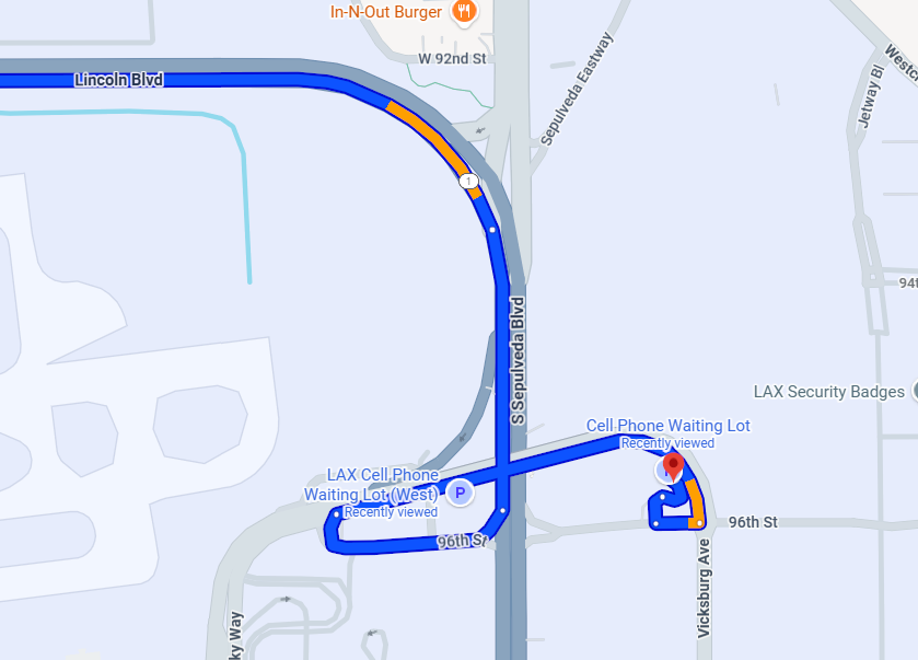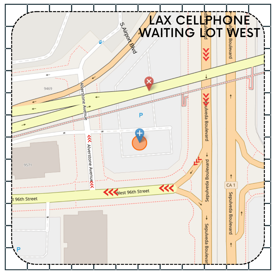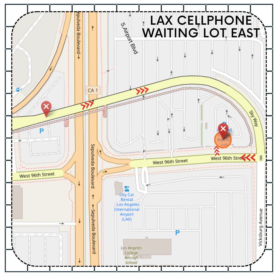 | Cell Phone Waiting Lot (West) | All (drive when rider is curbside) | W 96th St & Vicksburg Ave | Open lot | No EV; restrooms vary | Free waiting (no curb idling) | Free | Stay with vehicle; no overnight |
