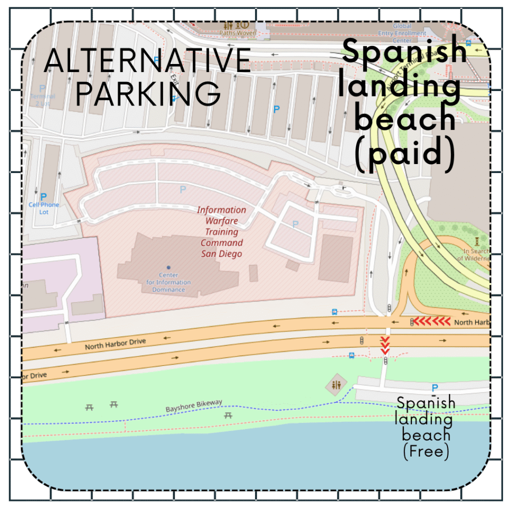 | Cell Phone Waiting Lot | 2311 McCain Road, San Diego, CA 92101 | Free (max 60 minutes) | Waiting for arriving passengers | Free short-term parking; stay with vehicle; engines off; open 5:00 a.m.–12:30 a.m. daily. |